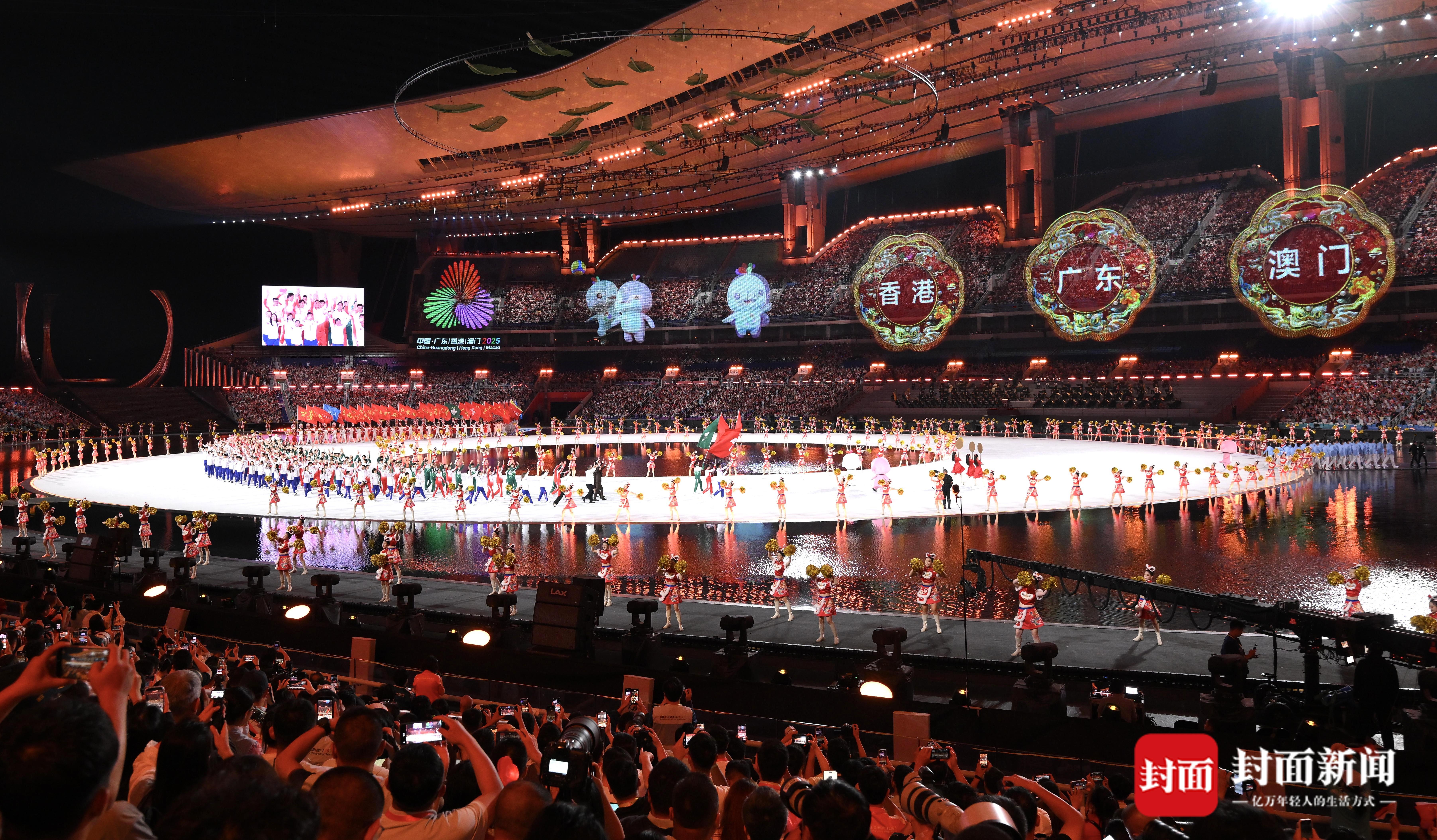 开幕式分为体育仪式、文体展演、火炬场内传递及点火三个部分,精选粤港澳三地人民耳熟能详的文化符号和承载集体情感的共同记忆,通过现代化的艺术手法和创新技术进行呈现。
